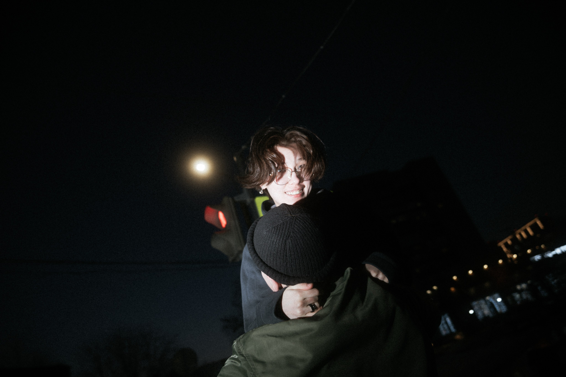 На улице, двое.